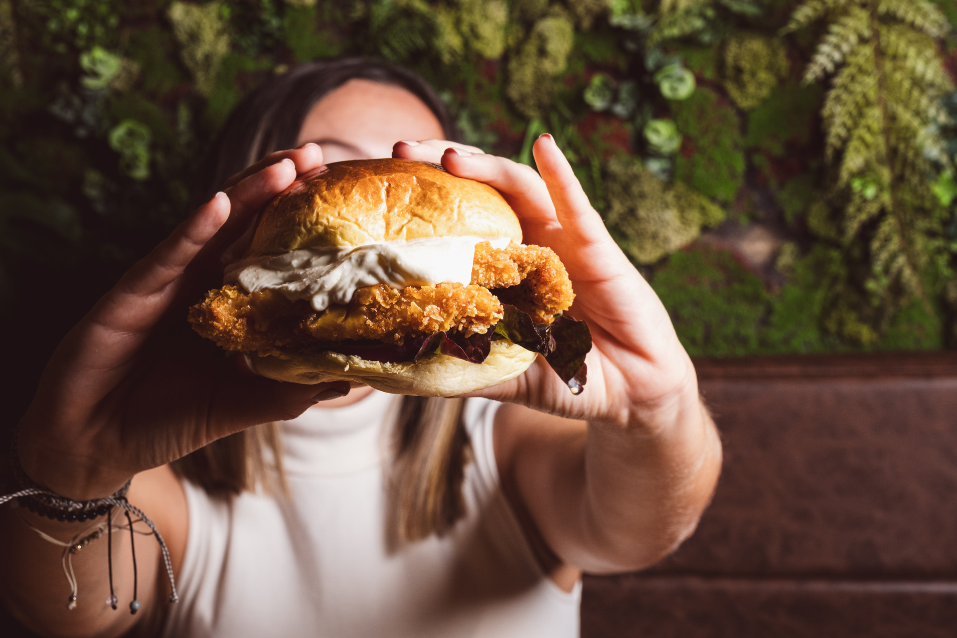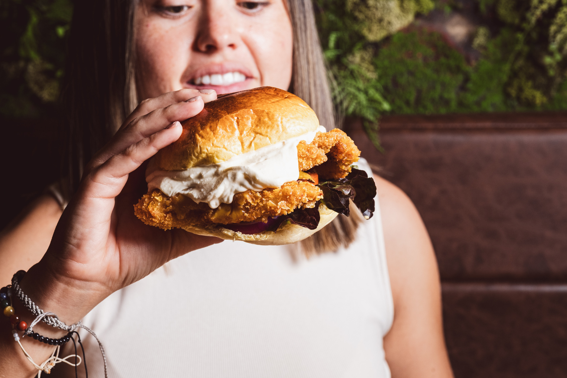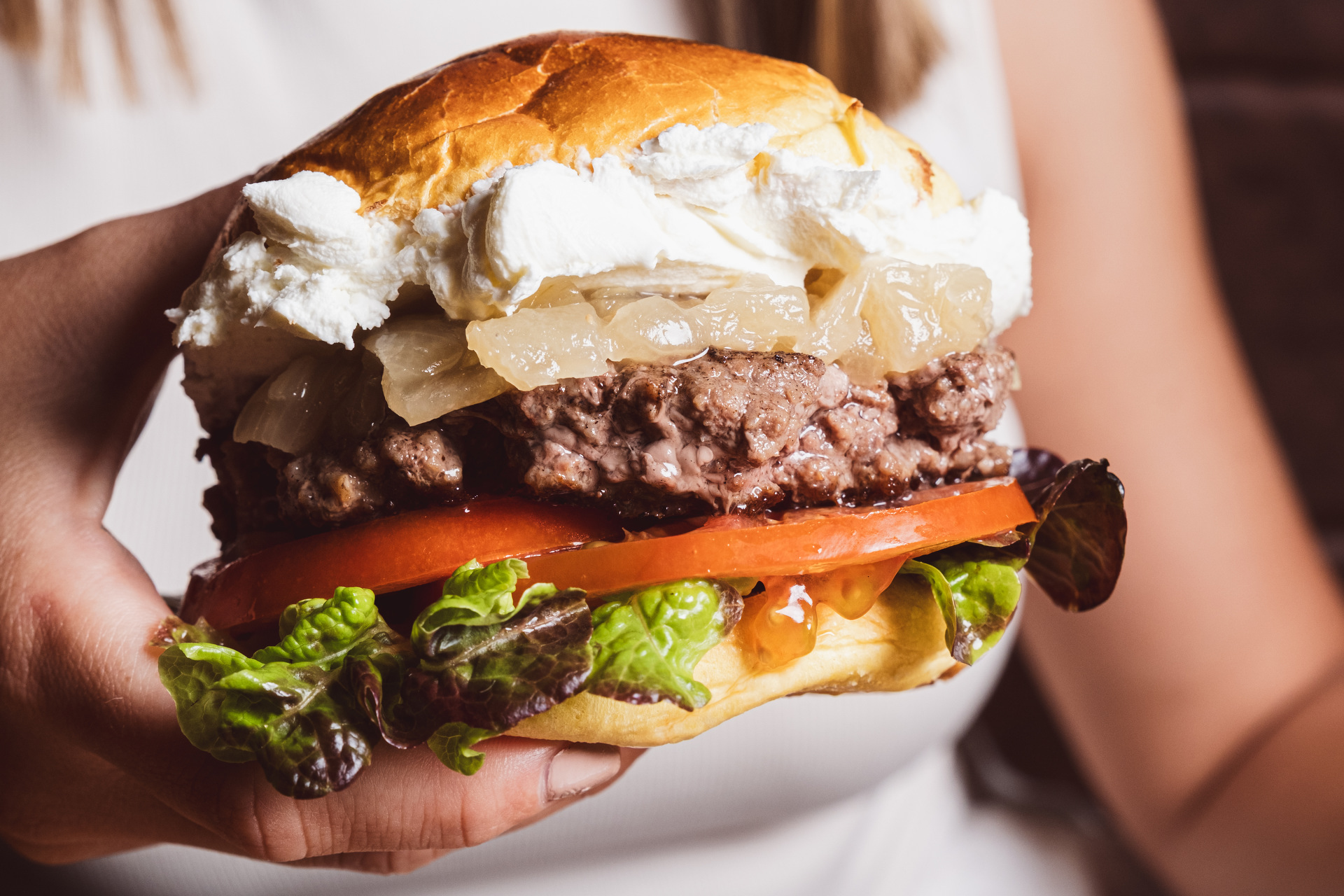 100% carne vegetal Beyond, lechuga, tomate, cebolla, pickles y salsa loca