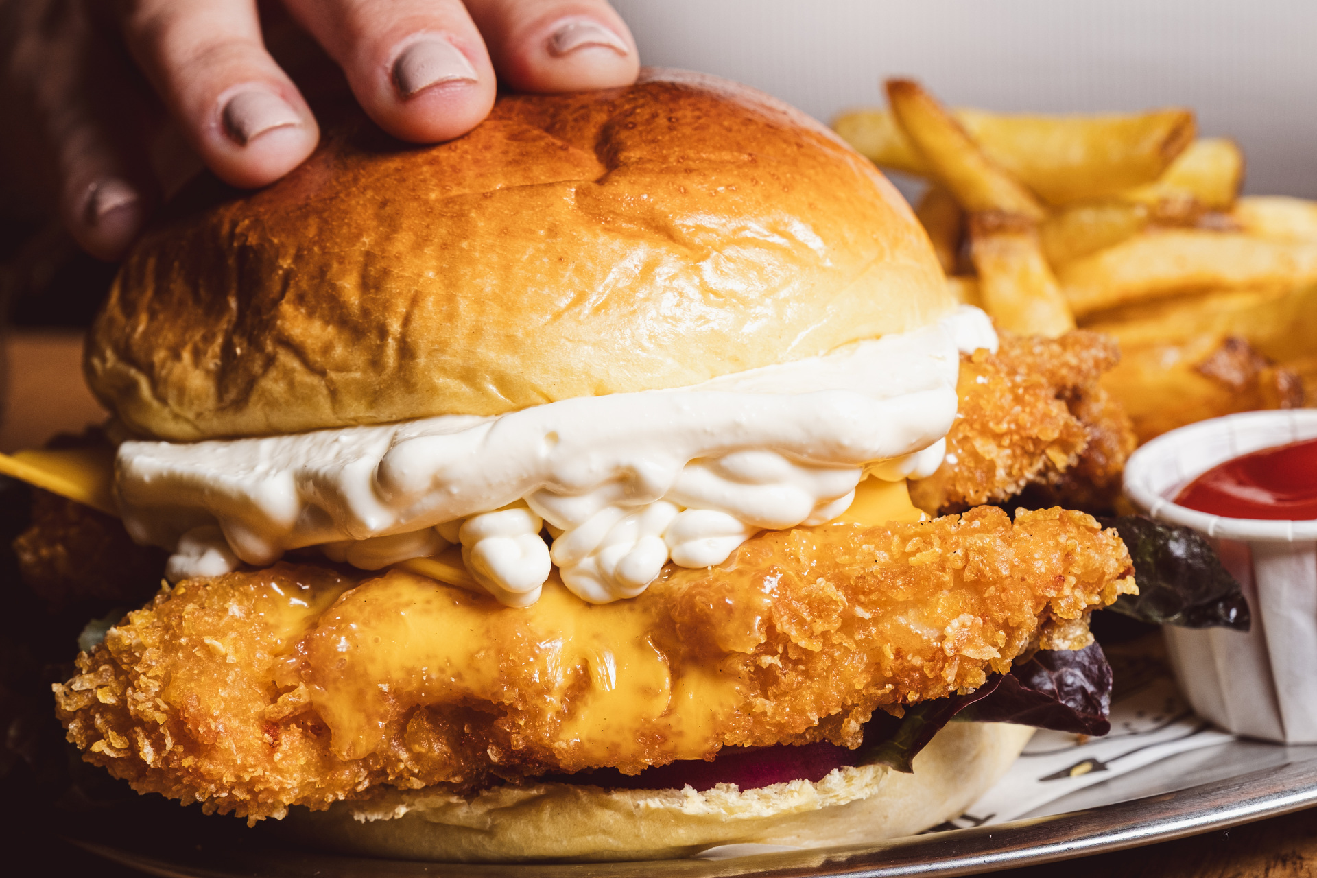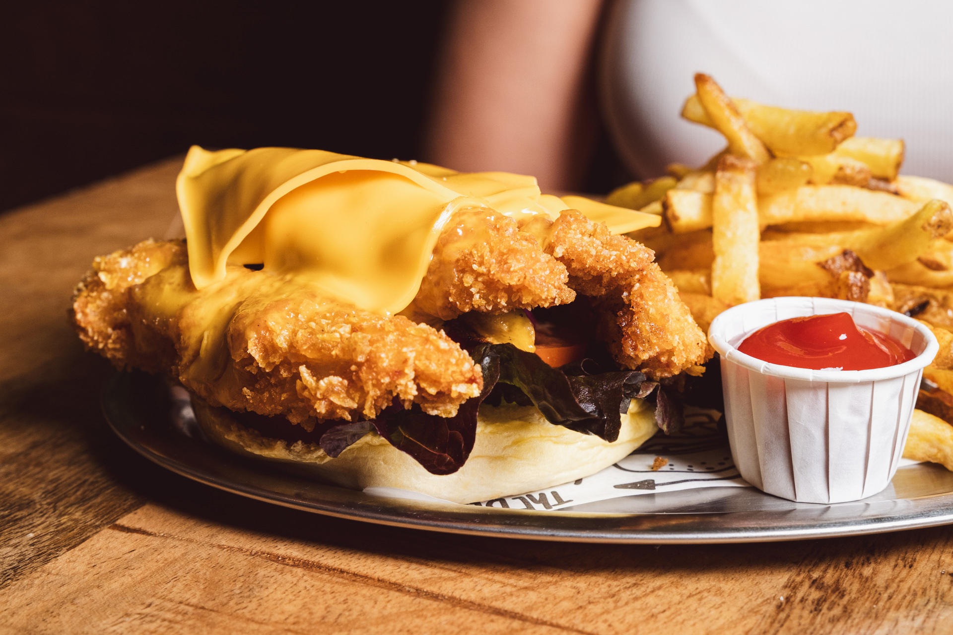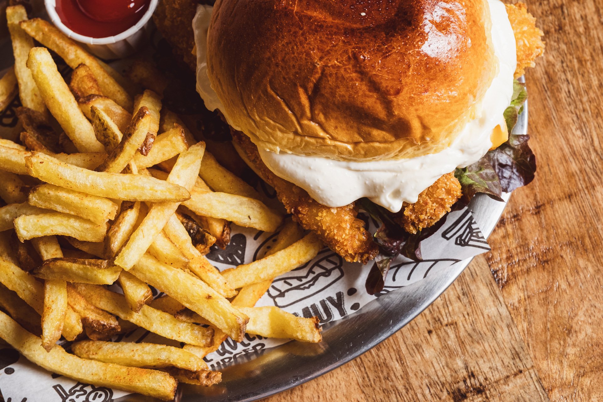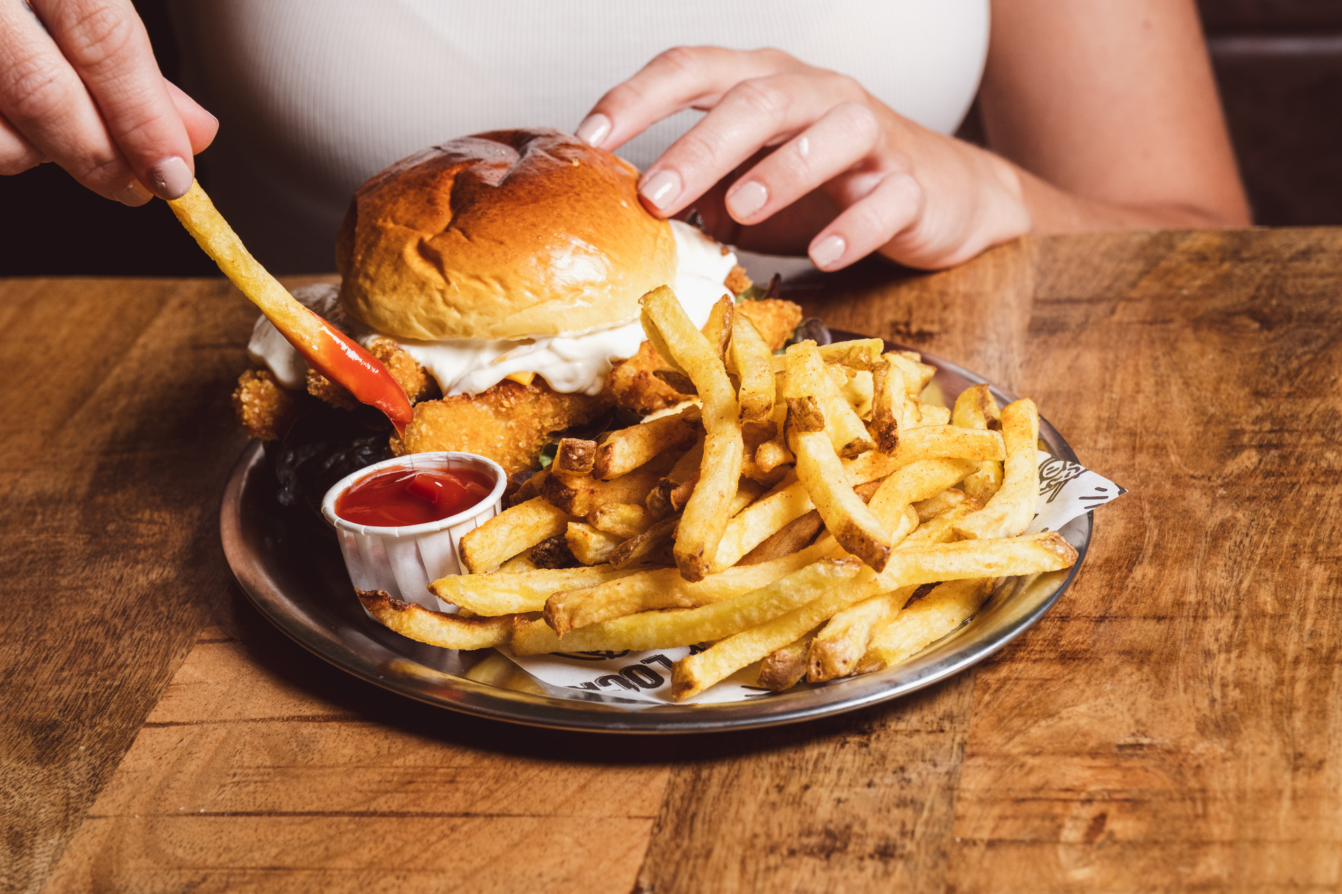 100% carne vegetal Beyond, lechuga, tomate, cebolla, pickles y salsa loca