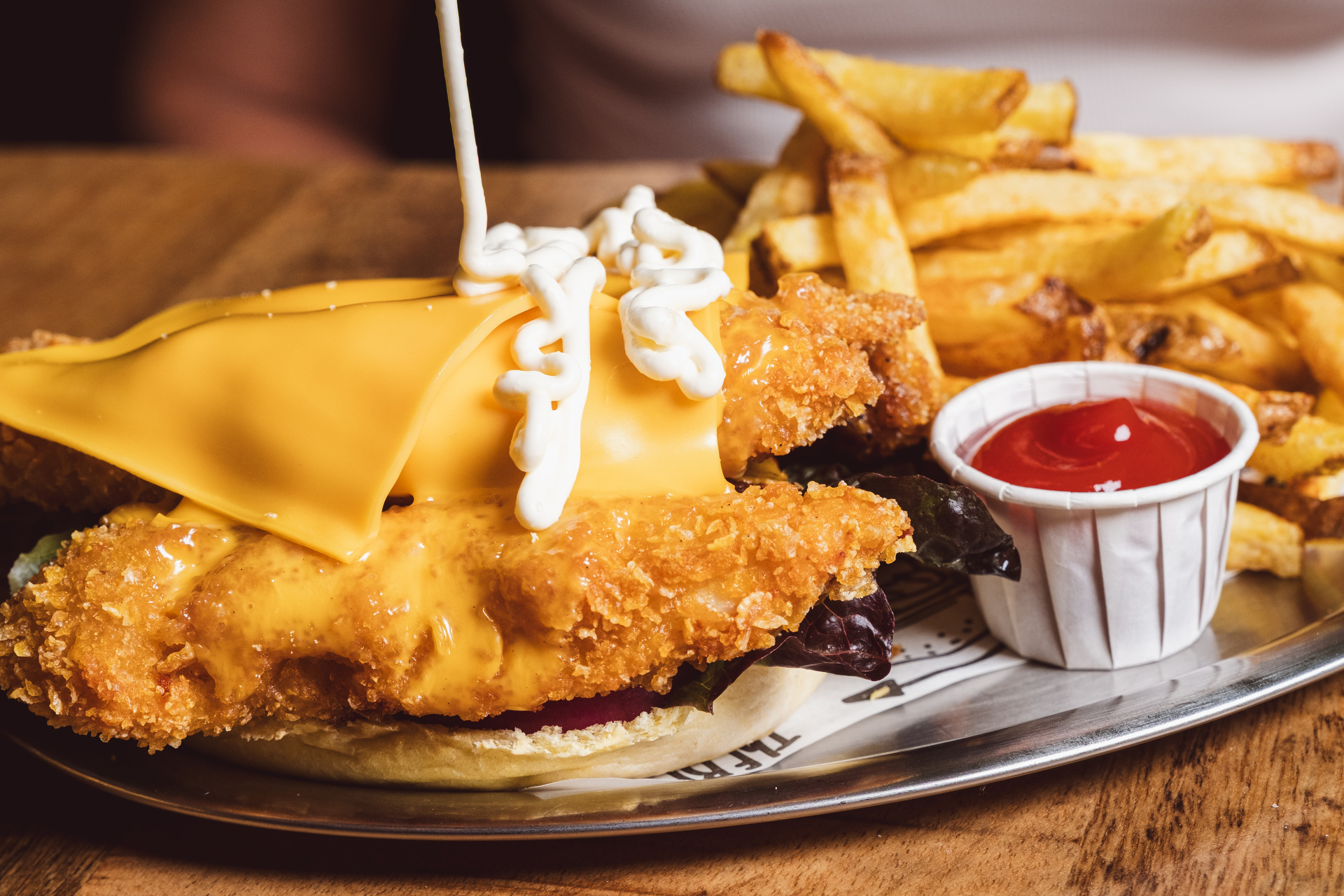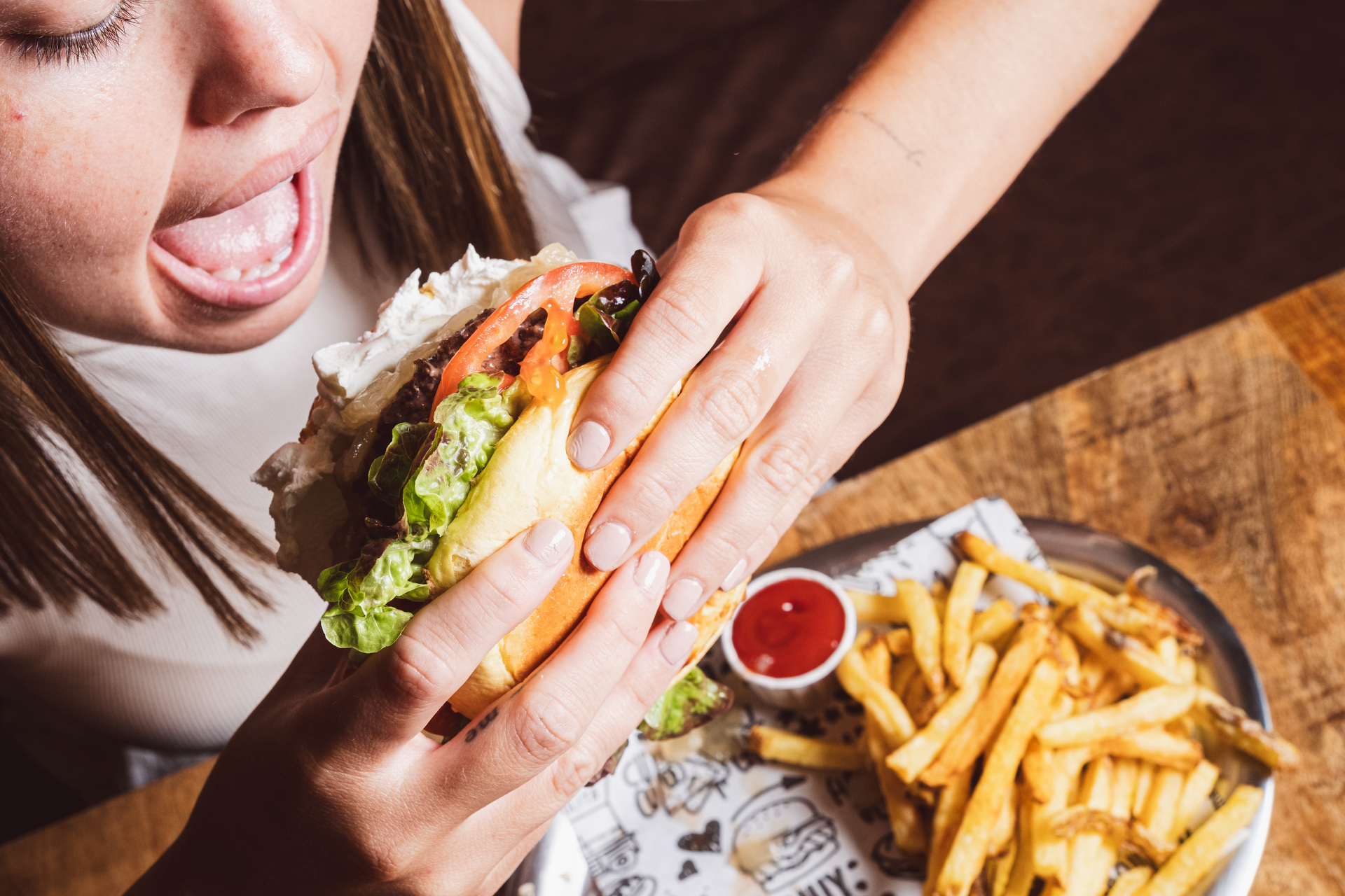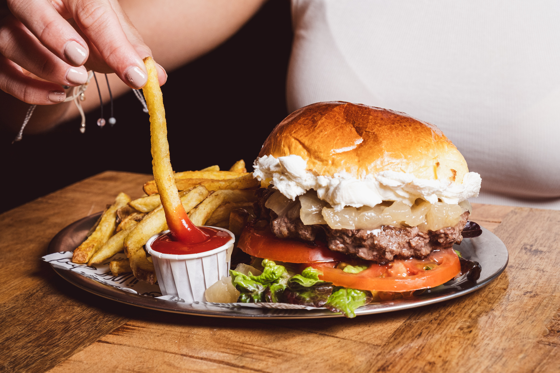 160 gr. de carne de vacuno, queso gouda, cebolla caramelizada y salsa de trufa