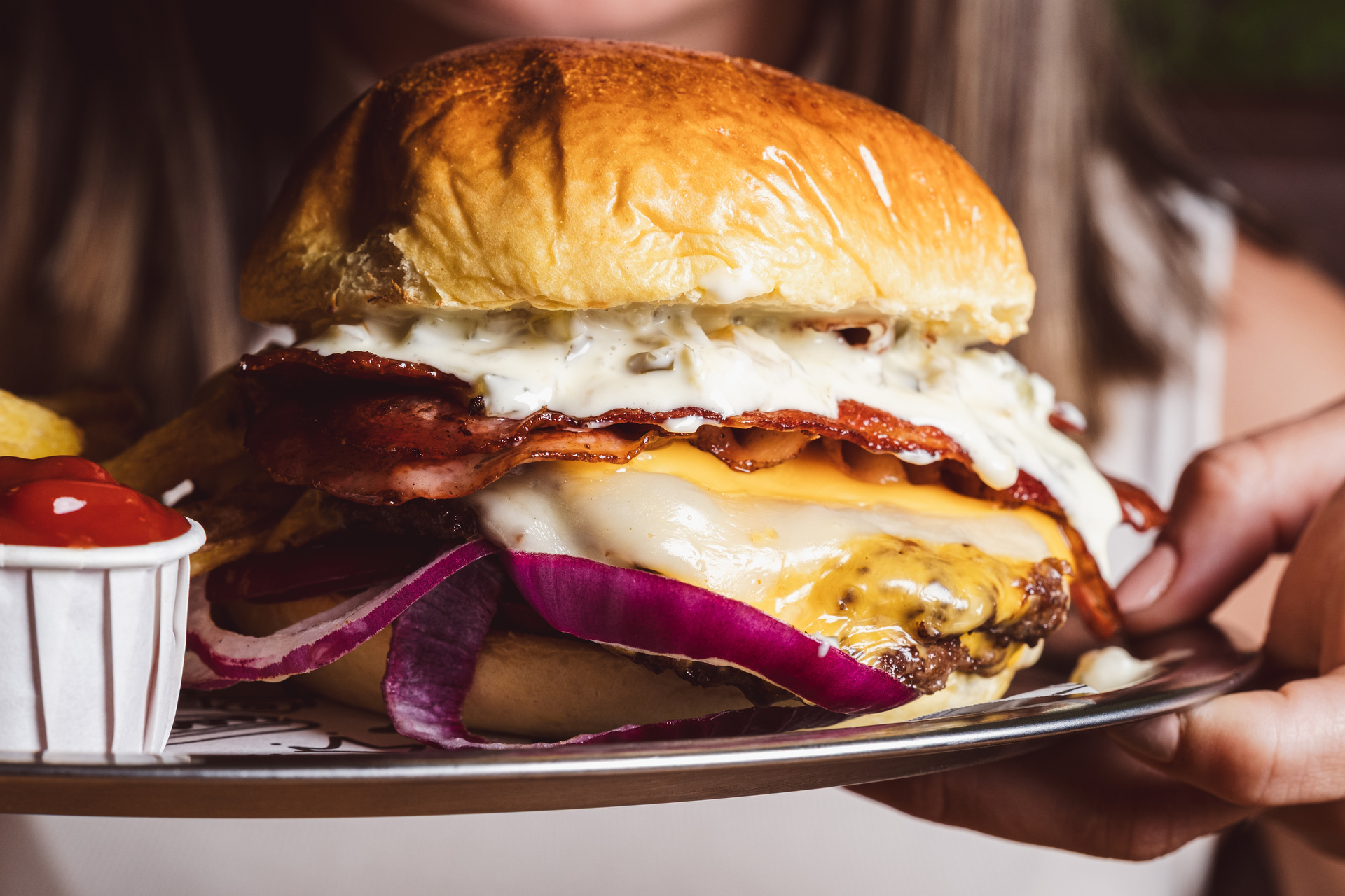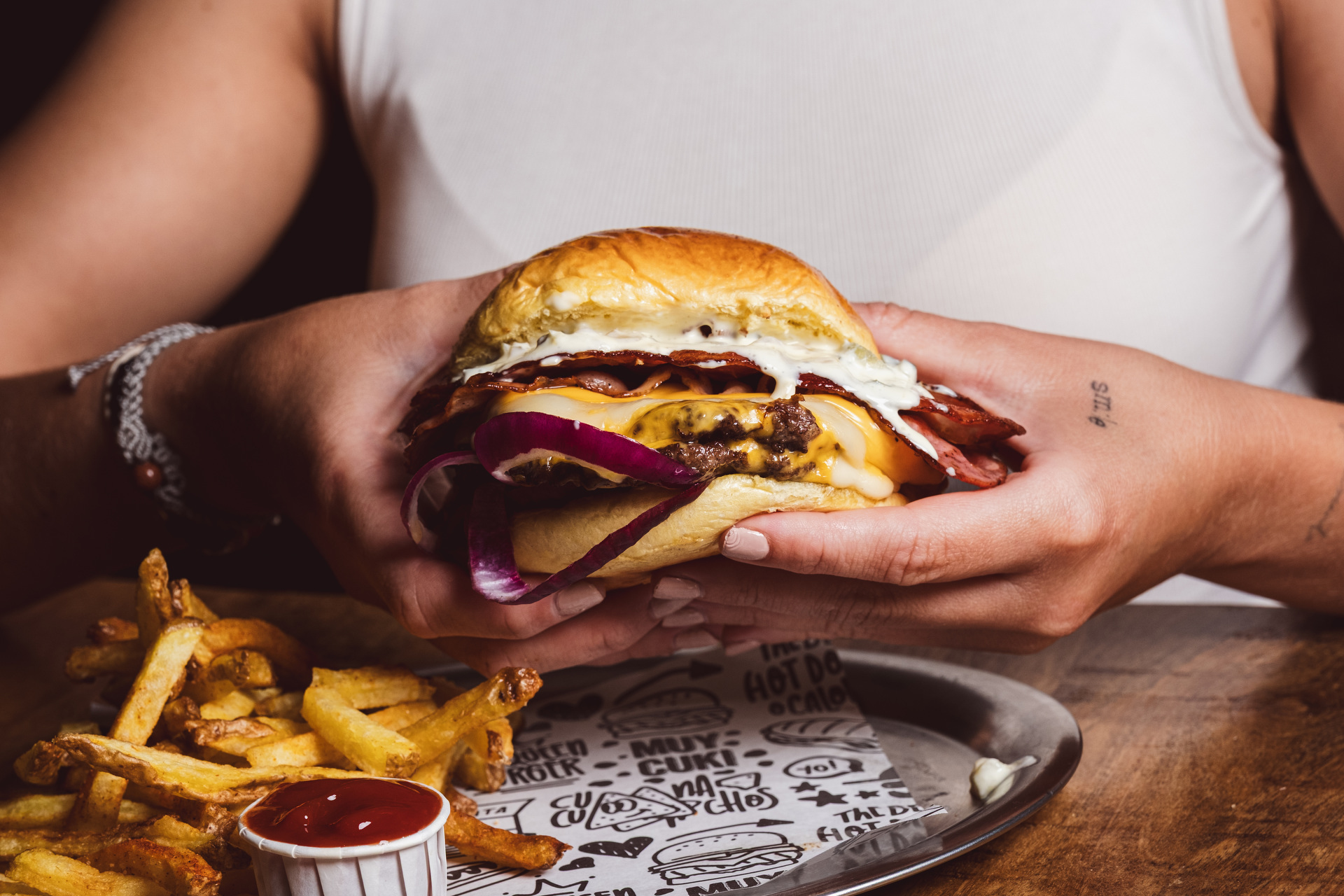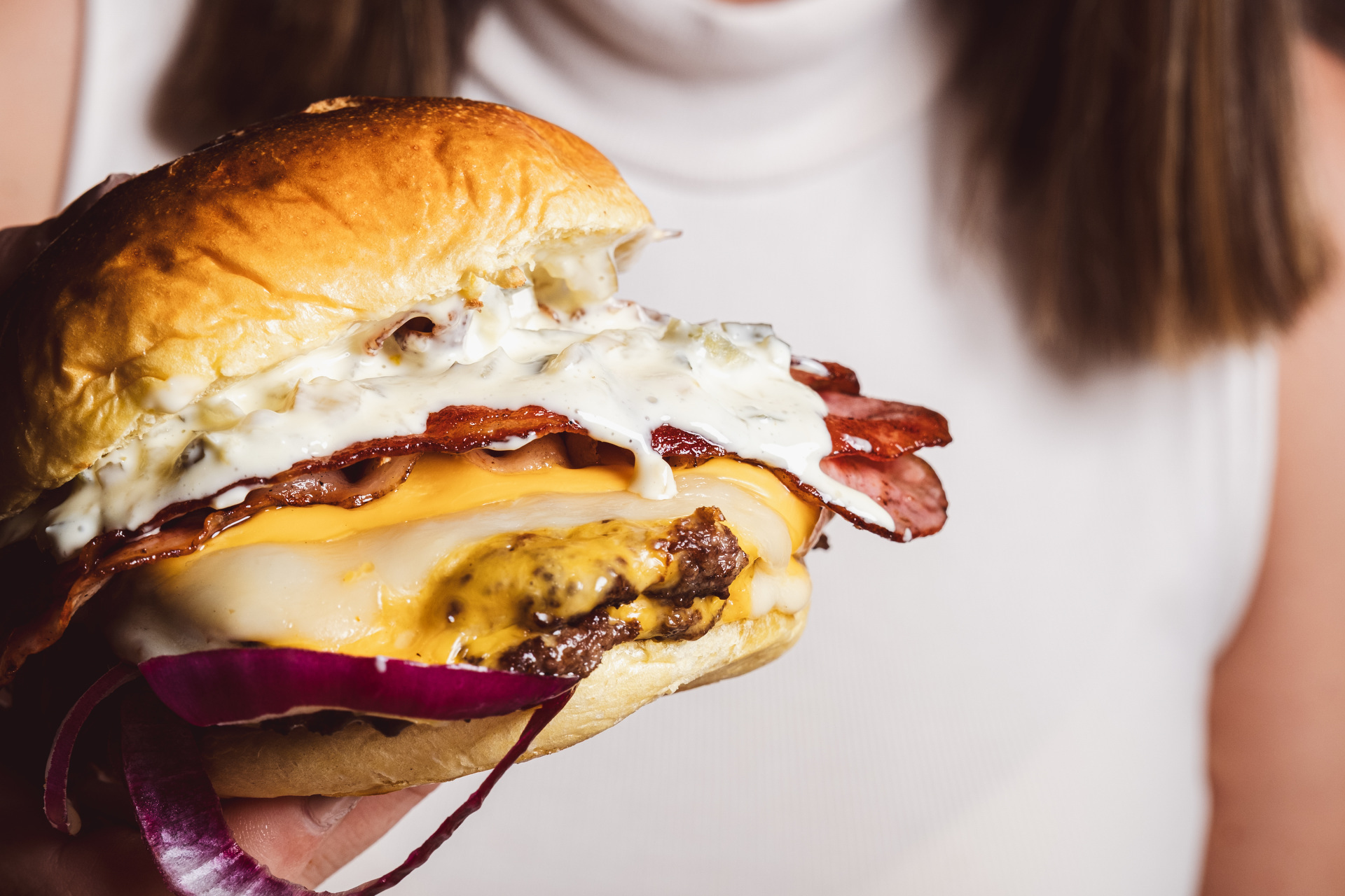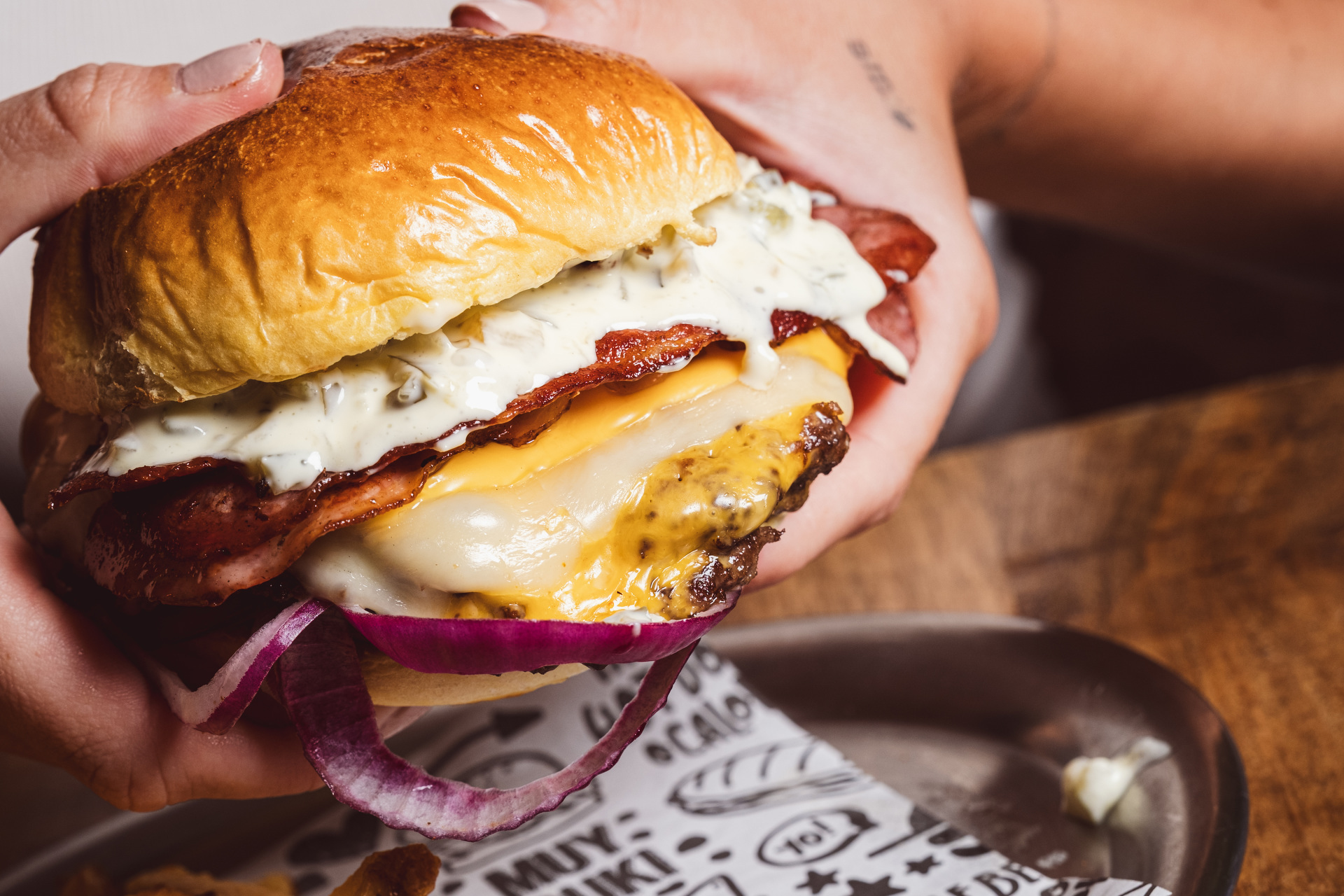 Doble smashburger de carne de vacuno, doble de queso cheddar, kétchup Heinz y mostaza French´s