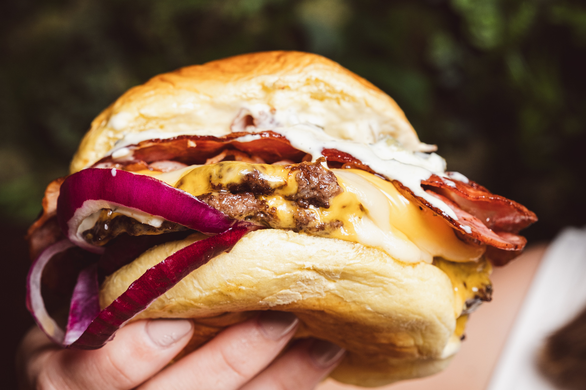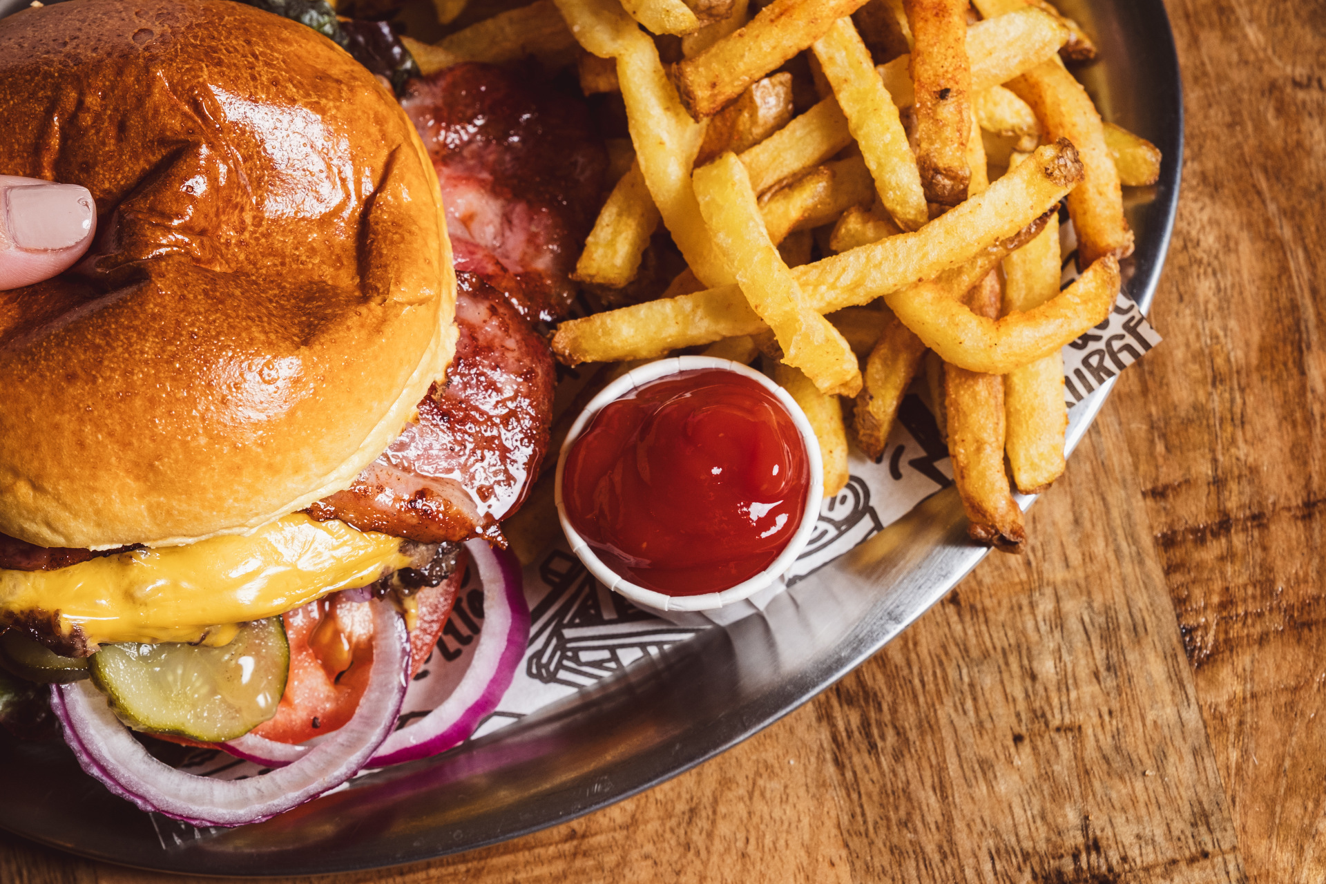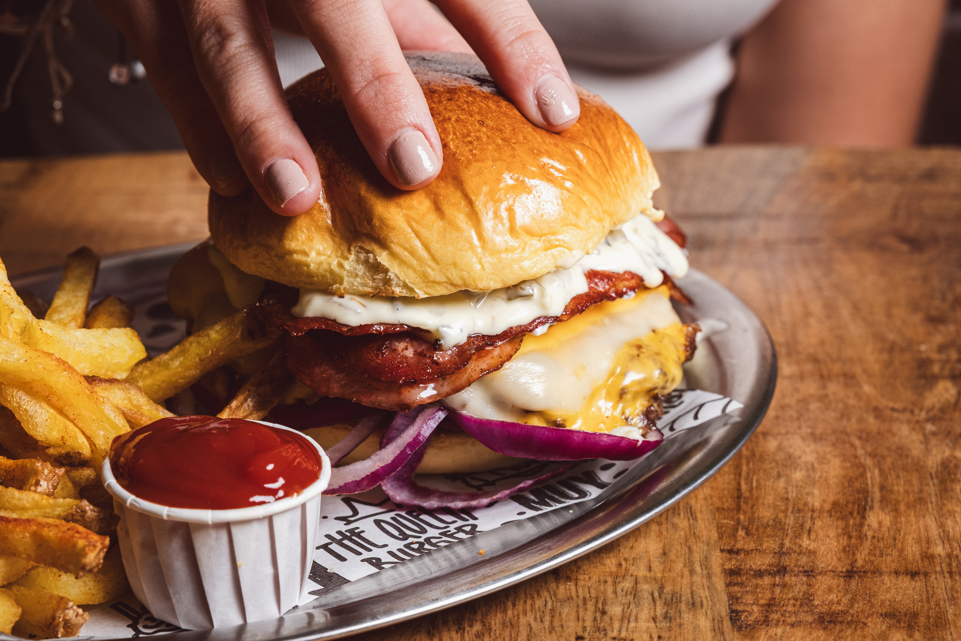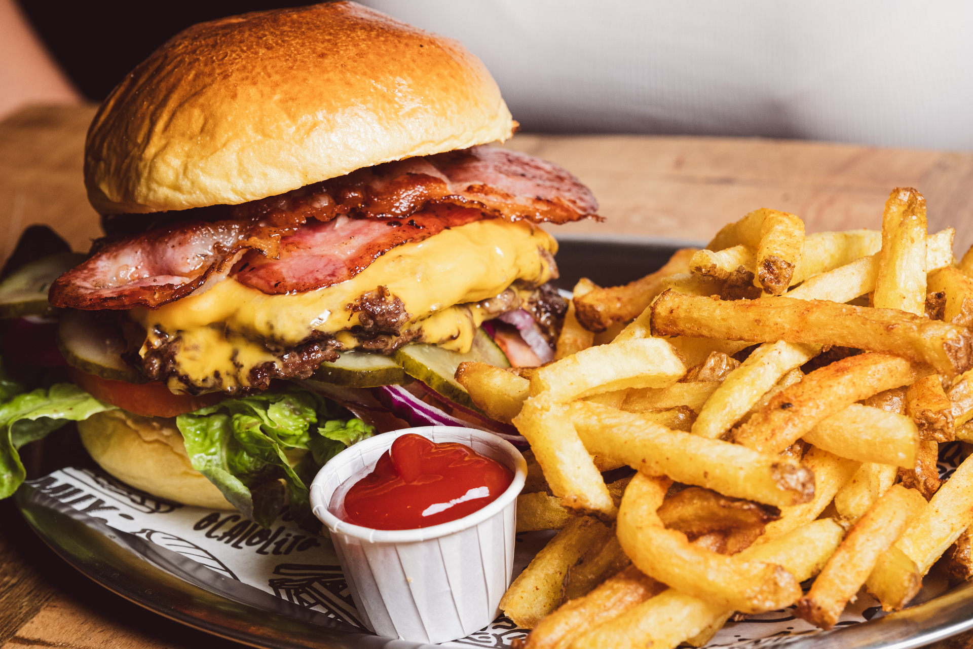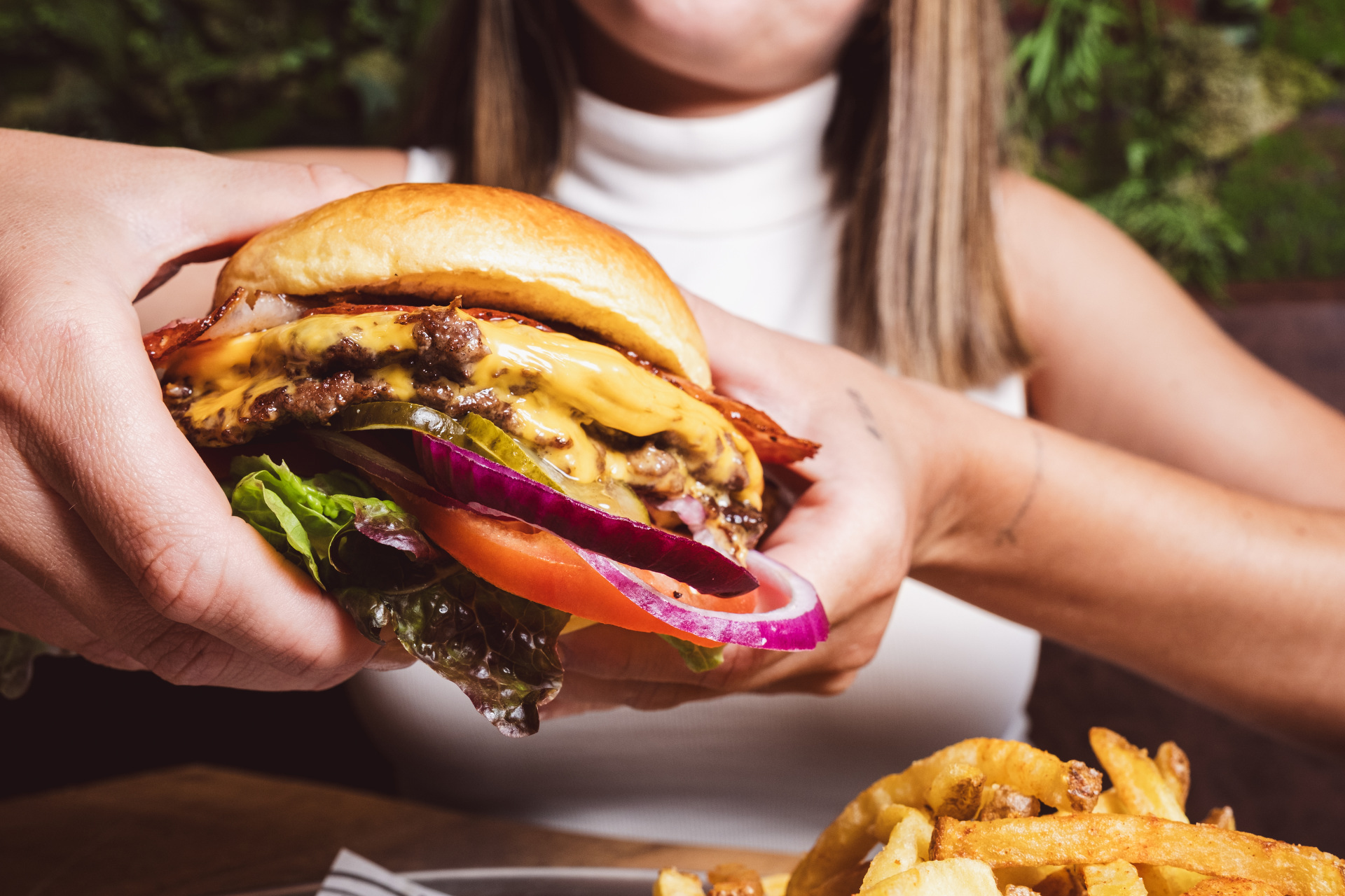 Doble smashburger de carne de vacuno, doble de queso cheddar, kétchup Heinz y mostaza French´s