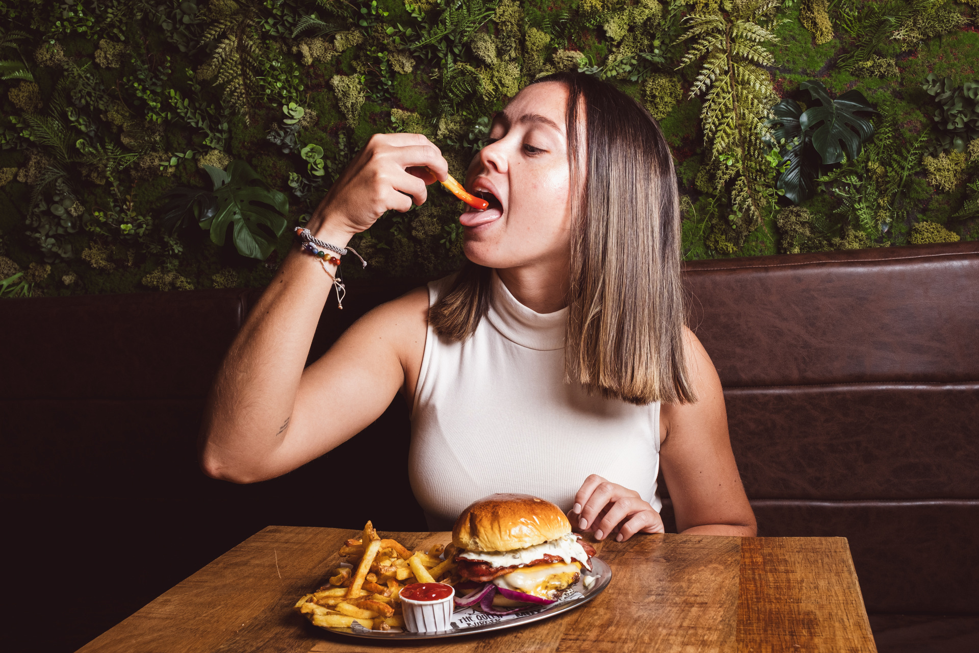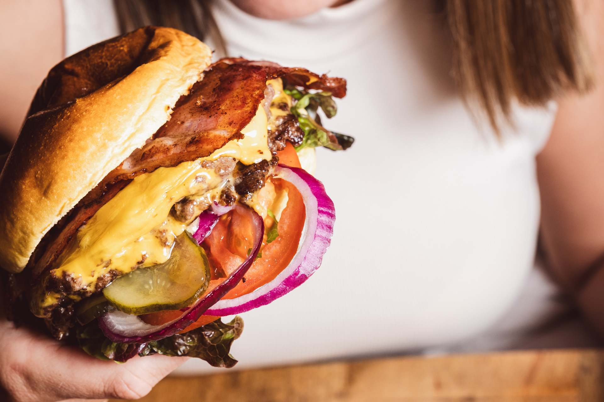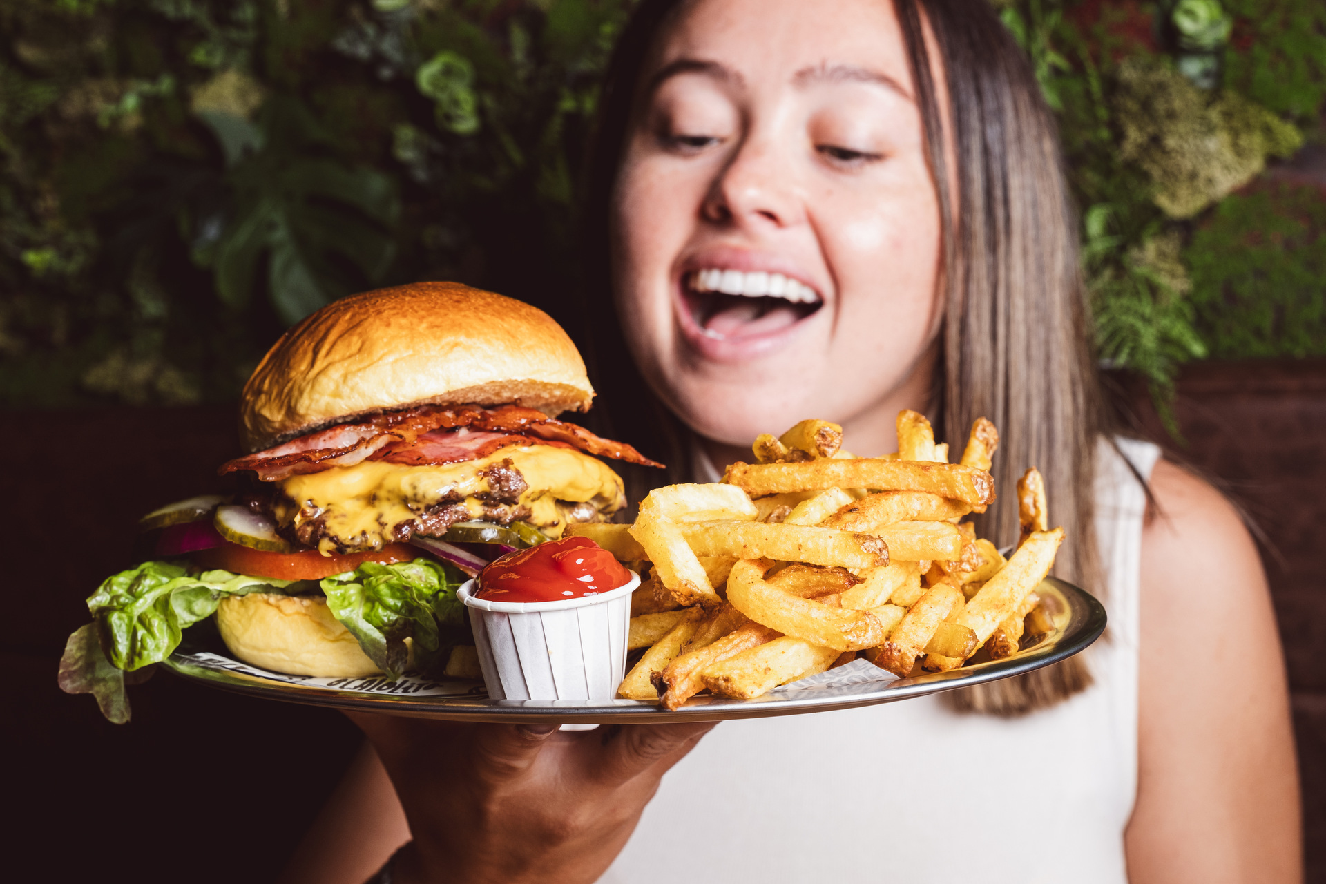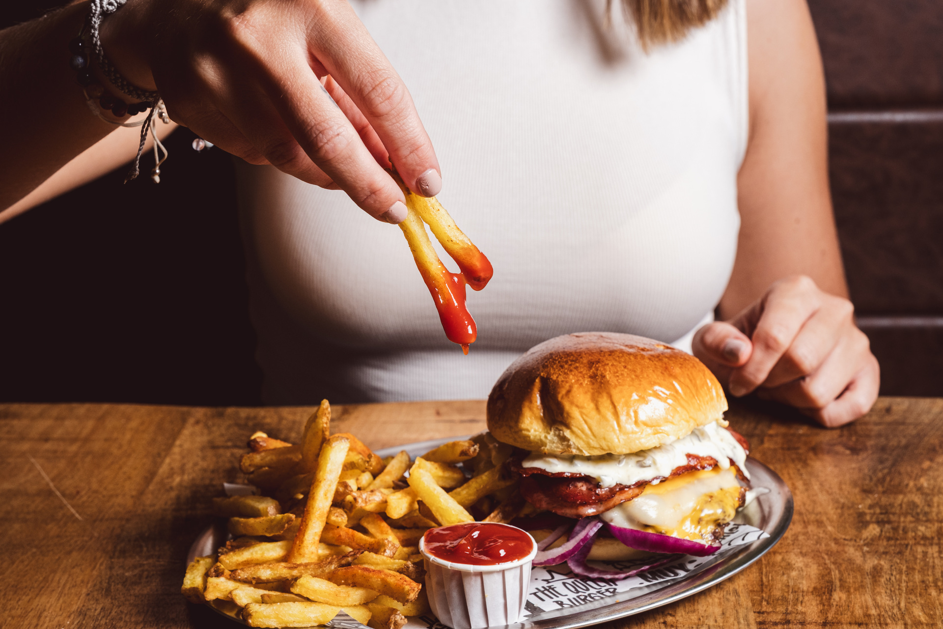 Doble smashburger de carne de vacuno, doble de queso cheddar, kétchup Heinz y mostaza French´s